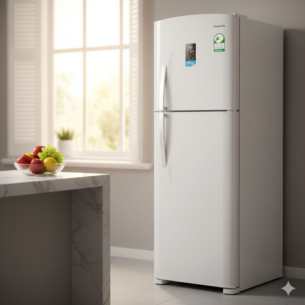 • Geladeira Panasonic NR-BT41PD1WA (387L, Branco, 127V): É a escolha ideal para famílias de médio porte que têm o orçamento como prioridade e buscam a máxima eficiência energética (A+++) em um design mais tradicional e funcional. Se a voltagem for compatível com sua residência, esta geladeira oferece um excelente custo-benefício em termos de economia a longo prazo.
