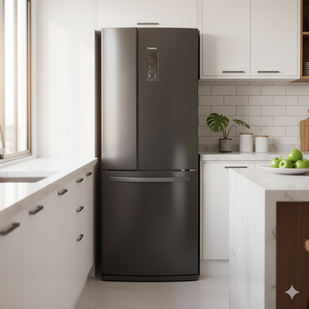 A Geladeira Panasonic NR-BB64PV1B é uma alternativa robusta e elegante, oferecendo uma excelente combinação de capacidade, design moderno e alta eficiência. Com 460 litros de capacidade total (345L no refrigerador e 115L no freezer), este modelo inverse em Black Inox é uma opção sólida para quem busca durabilidade e um visual diferenciado.
