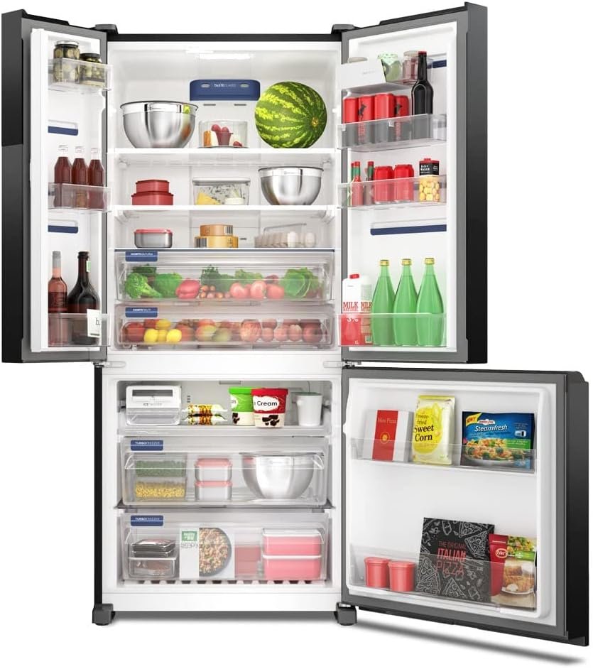 - Quem valoriza design e espaço: O estilo Multidoor em Black Inox Look e a capacidade de 590 litros são ideais para cozinhas modernas e necessidades de armazenamento amplas.