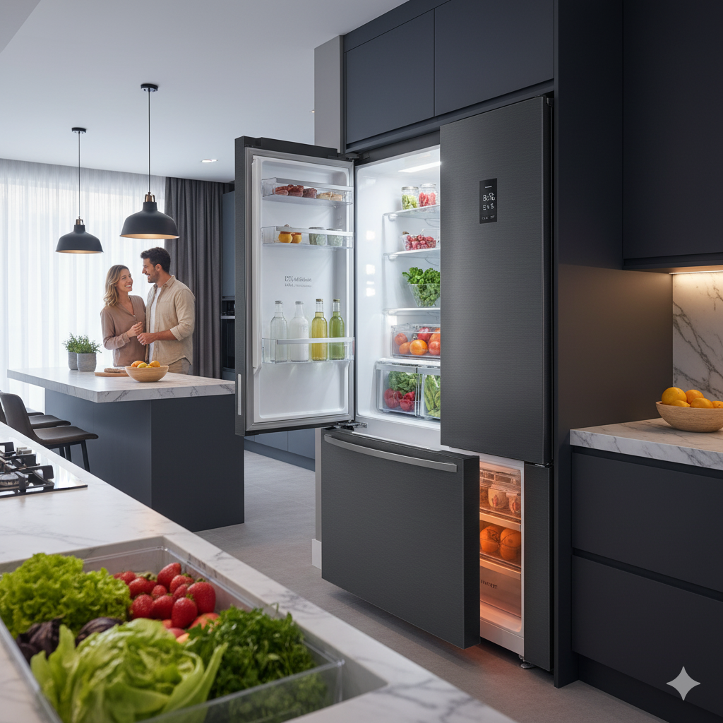 Ao buscar pelas melhores geladeiras Frost Free no mercado, o consumidor moderno espera encontrar não apenas um aparelho que elimine a necessidade de degelo manual, mas também um parceiro inteligente para o dia a dia, que combine eficiência energética, design elegante e tecnologias avançadas de conservação. Nesse contexto, a Geladeira Electrolux Multidoor Efficient com AutoSense e Inverter 590 L Black Inox Look (IM8B) 127V se destaca como uma opção que promete atender e superar essas expectativas.