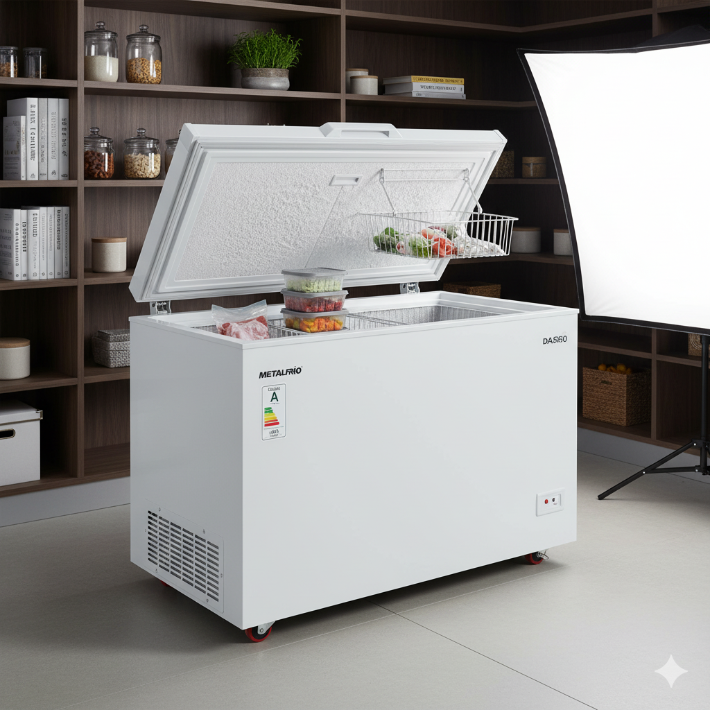 - Capacidade: Muito maior e focada exclusivamente no congelamento, variando de cerca de 80 litros a mais de 500 litros.